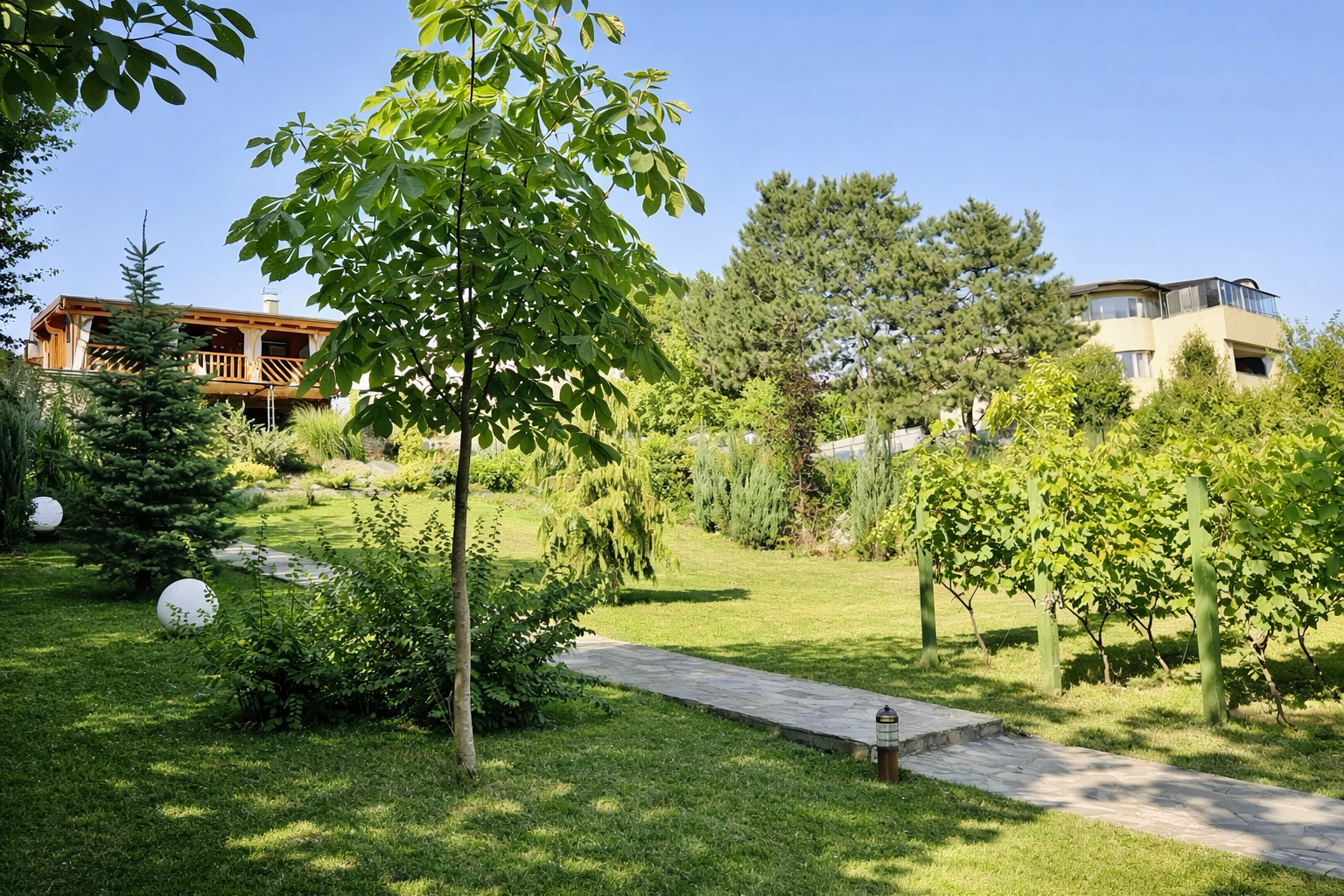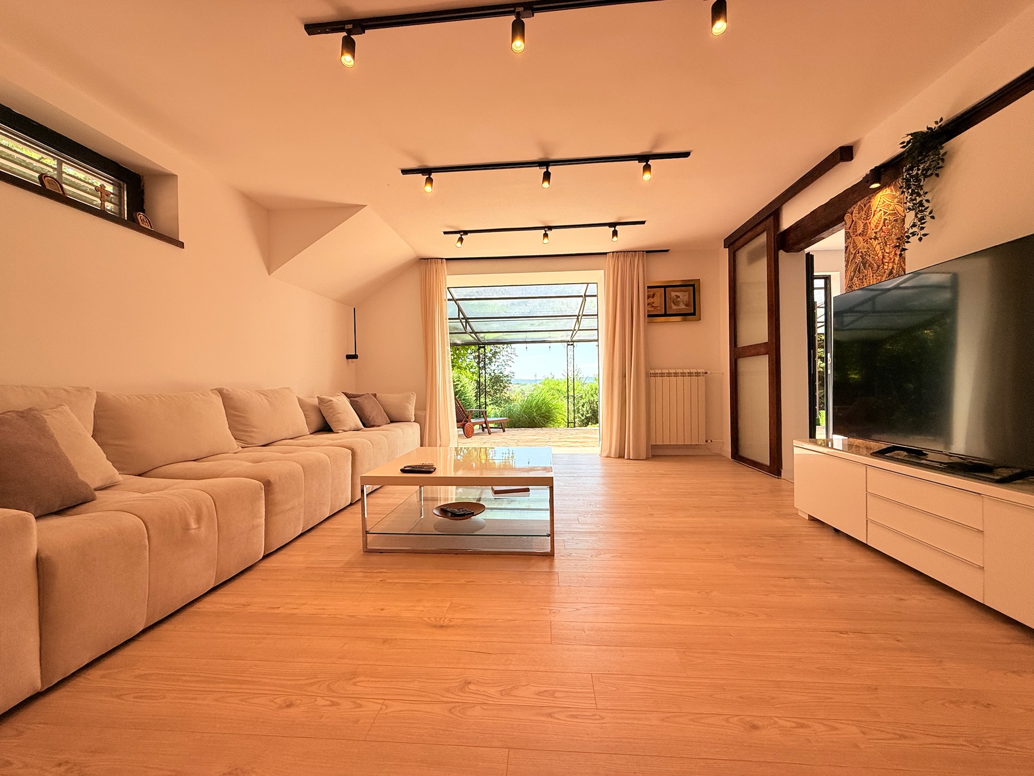 This private villa is rented exclusively to one group, ensuring complete privacy, discretion, and comfort throughout the stay. Set within a quiet residential neighborhood, just 10 minutes from the city center, the property offers a rare balance between peaceful surroundings and easy access to urban amenities. The main villa, together with two fully independent apartments with private entrances, is located on a fully fenced private estate of over 1,200 m², overlooking Mount Avala. Carefully designed outdoor spaces include a private swimming pool, landscaped gardens, multiple outdoor living and dining areas, a summer kitchen, a traditional tavern, and secure private parking.